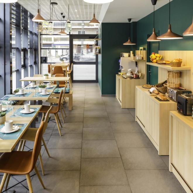 Le petit-déjeuner est composé de plusieurs variétés de pains (notamment sans gluten), de produits AOC du Poitou-Charentes (comme le beurre et les croissants), de salade de fruits, de fruits frais, de divers fromages, ainsi que de yaourts et de nombreux thés bio.