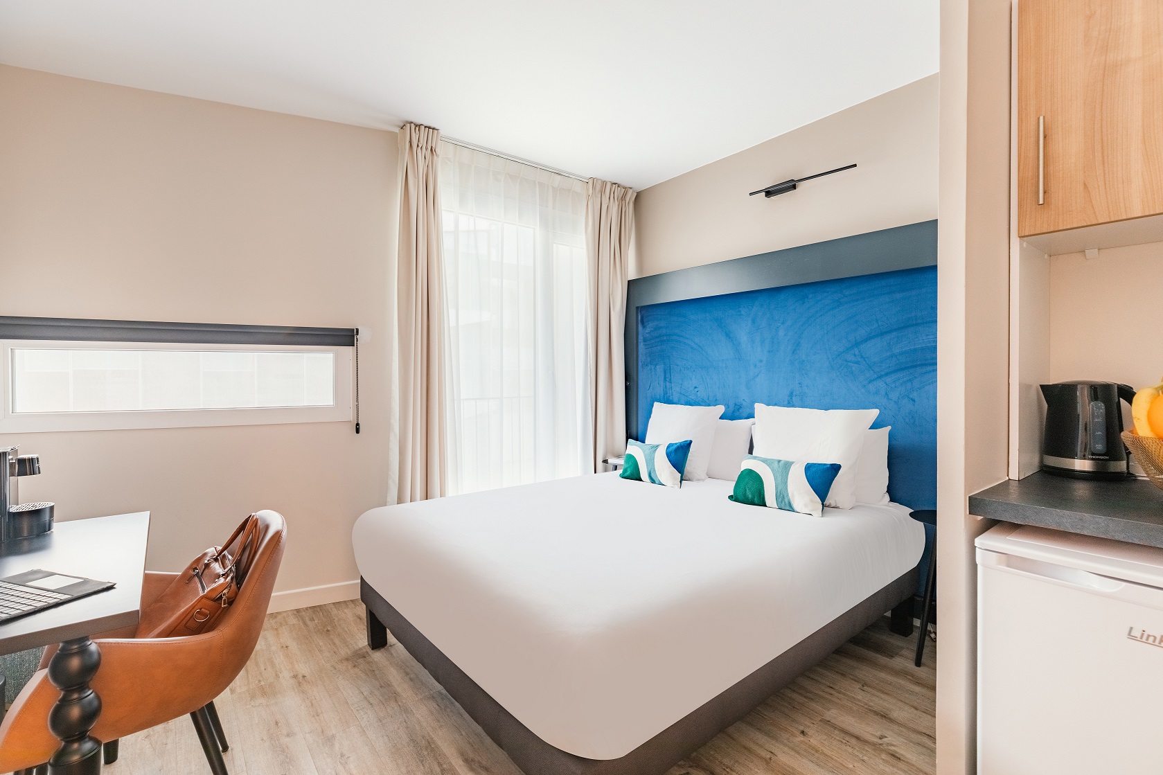 Un espace bureau est disponible dans tous nos Appart’ ainsi que le wifi gratuit.