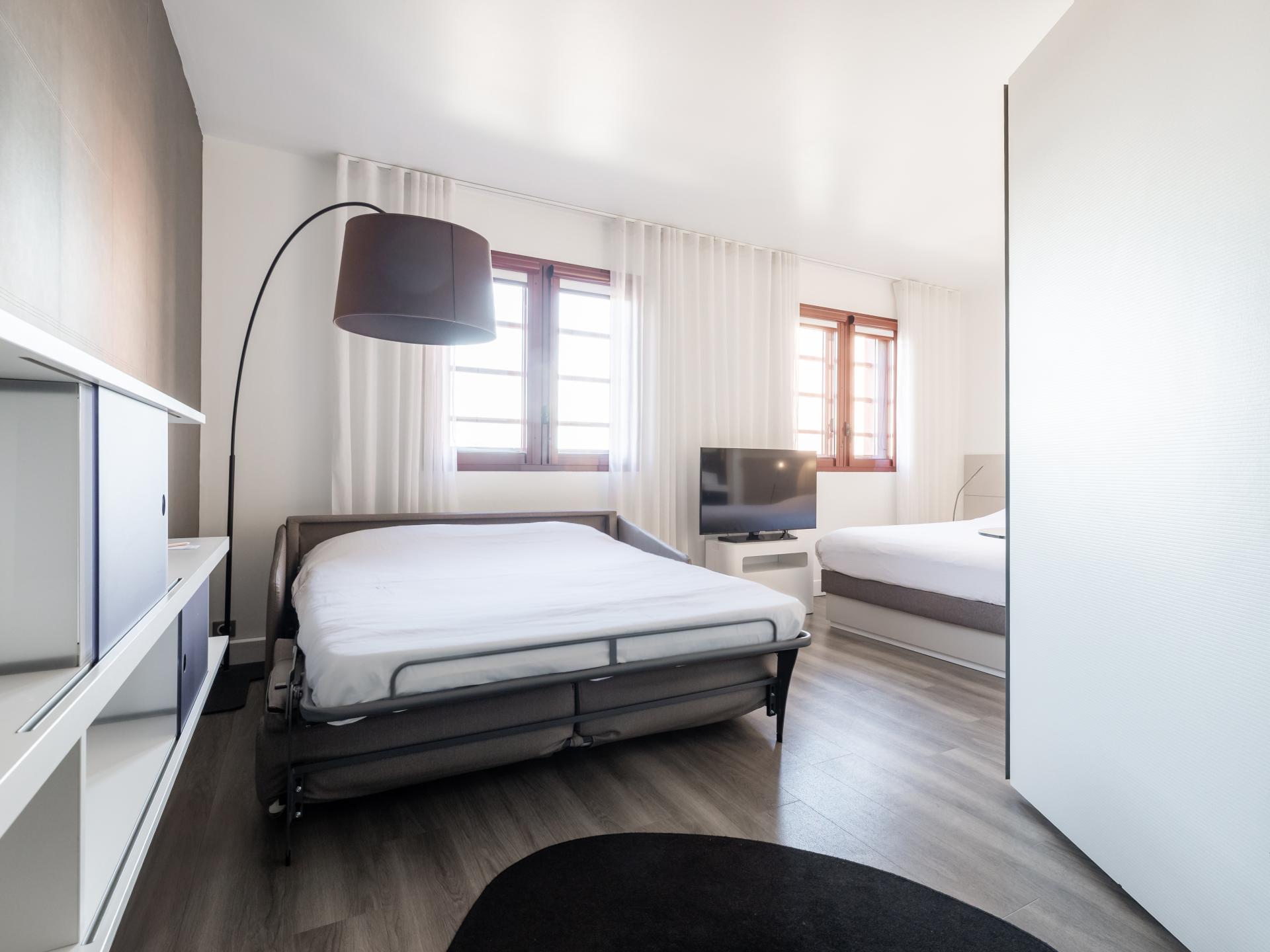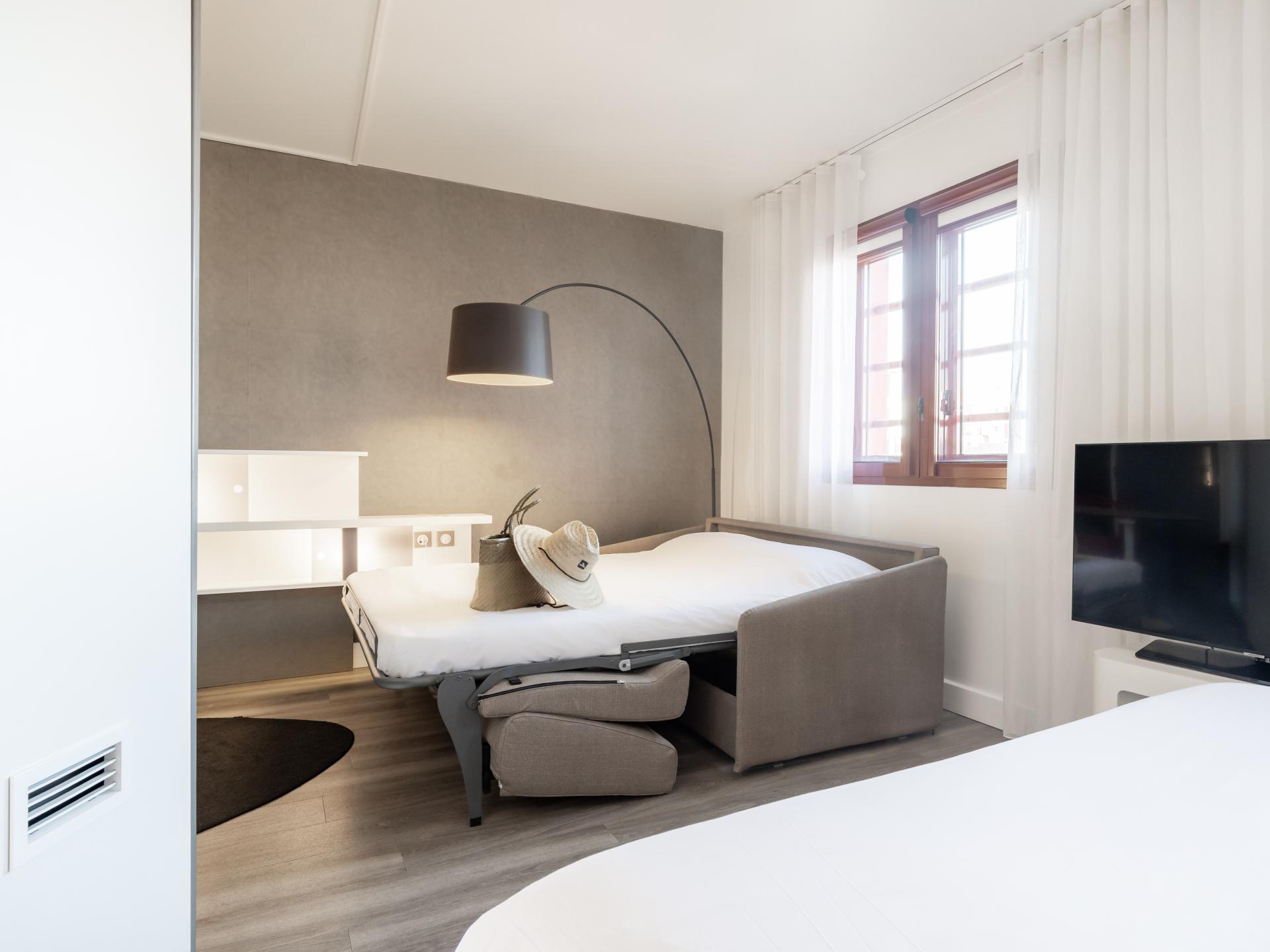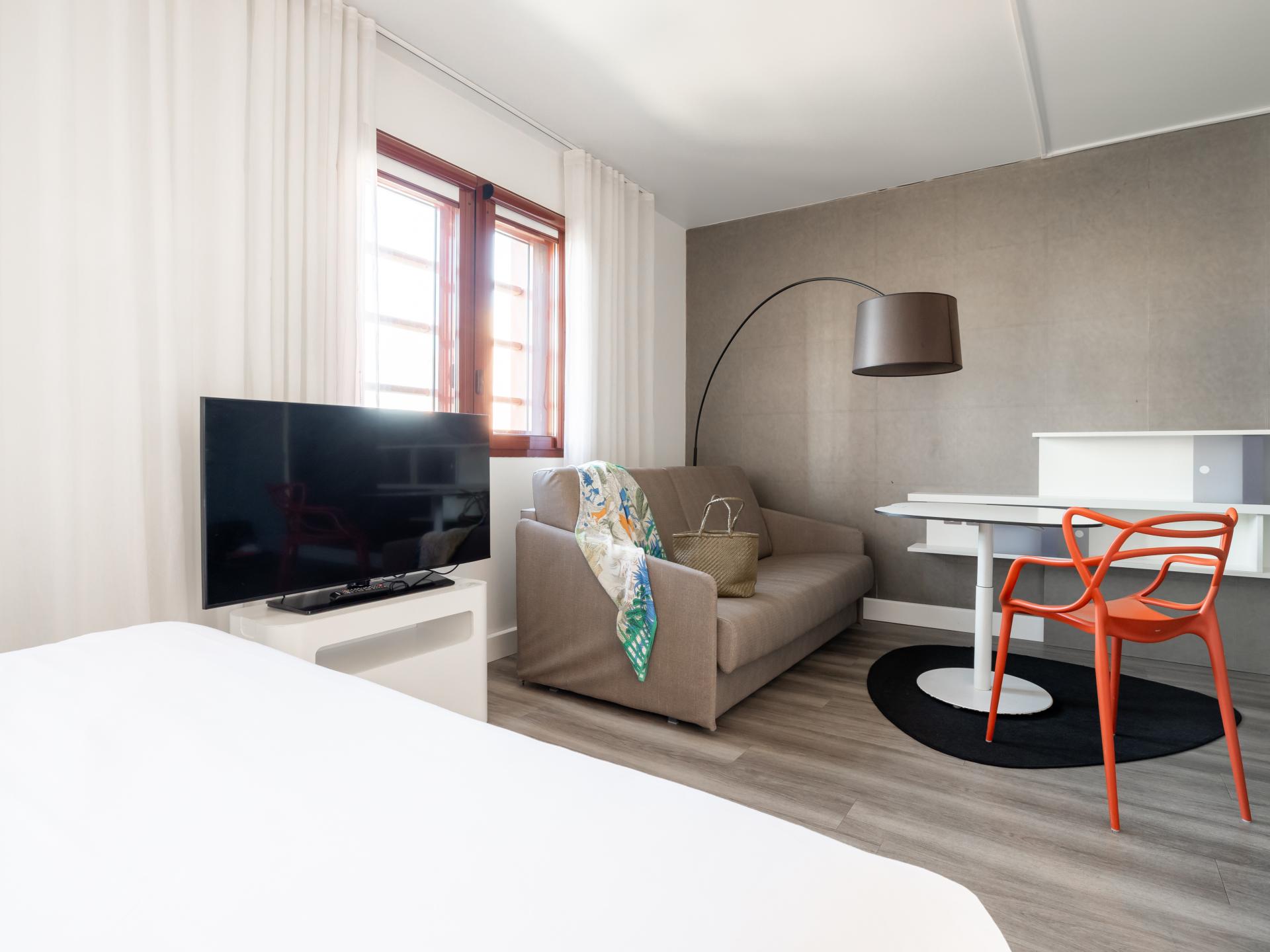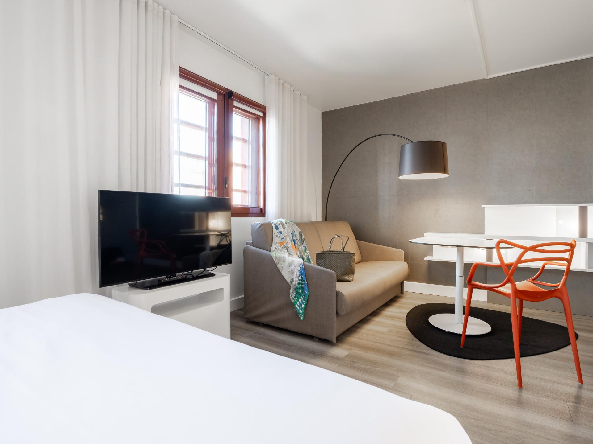 L'hôtel vous propose des suites climatisées de 30m2 tout confort pouvant accueillir jusqu'à 3 ou 4 personnes. Prenez soin de vous dans notre salle de fitness et détendez-vous au bar ou sur la terrasse. Situé en centre-ville de Perpignan, notre hôtel invite à la promenade. Partez à la découverte de la Catalogne française. Profitez-en ! Vous êtes à 15 minutes du littoral méditerranéen et de ses paysages à couper le souffle. Notre équipe dynamique et chaleureuse est là pour vous renseigner !