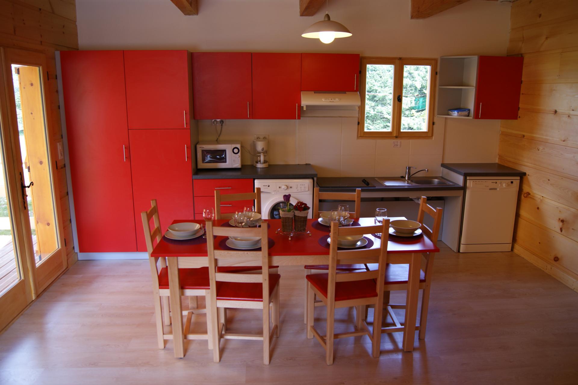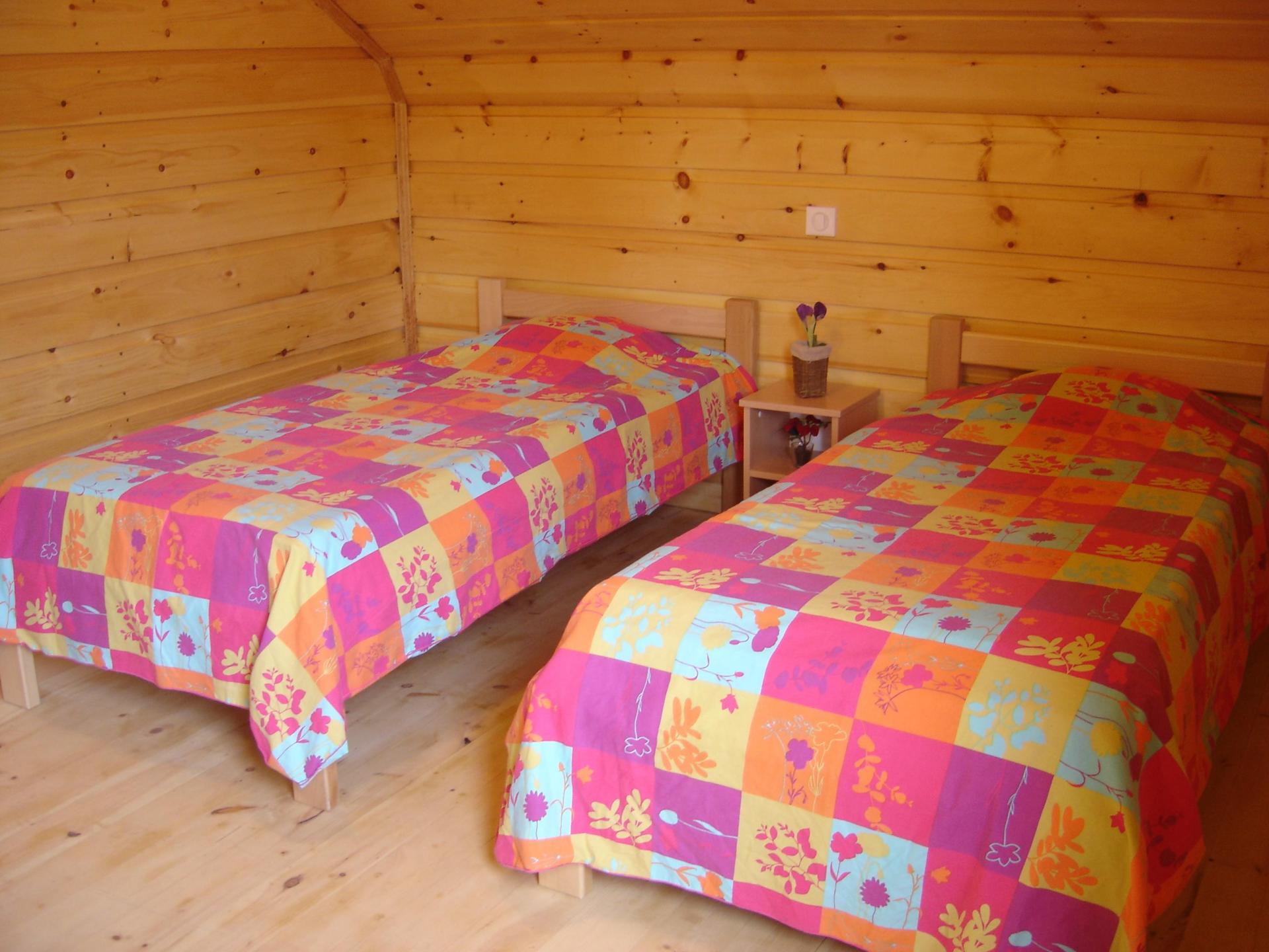- 6 chalets d’une superficie de 65/70m² avec 6 lits (1 chambre de 3 lits + 1 chambre de 2 lits + 1 lit sur le coin mezzanine)