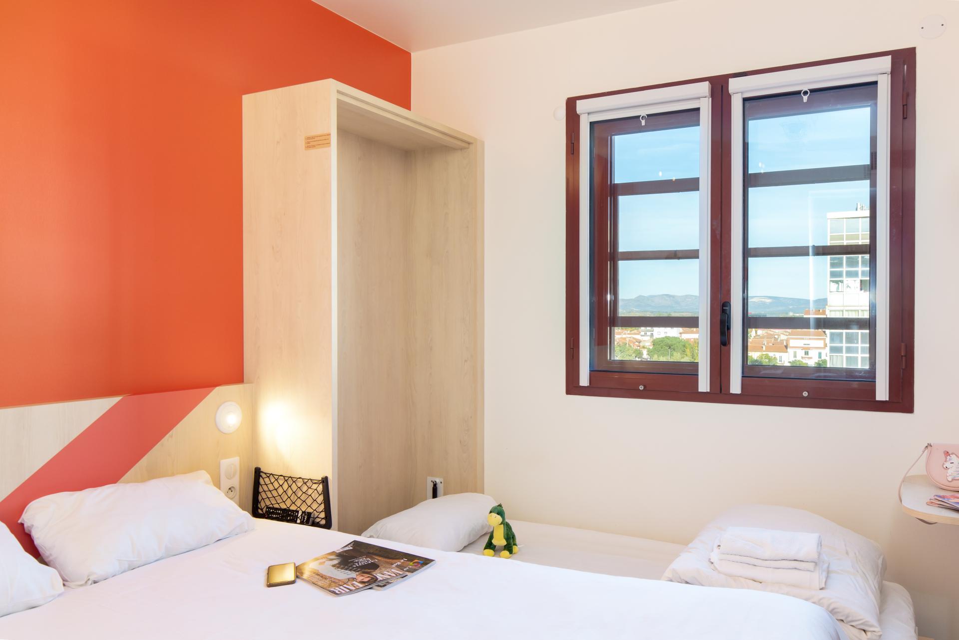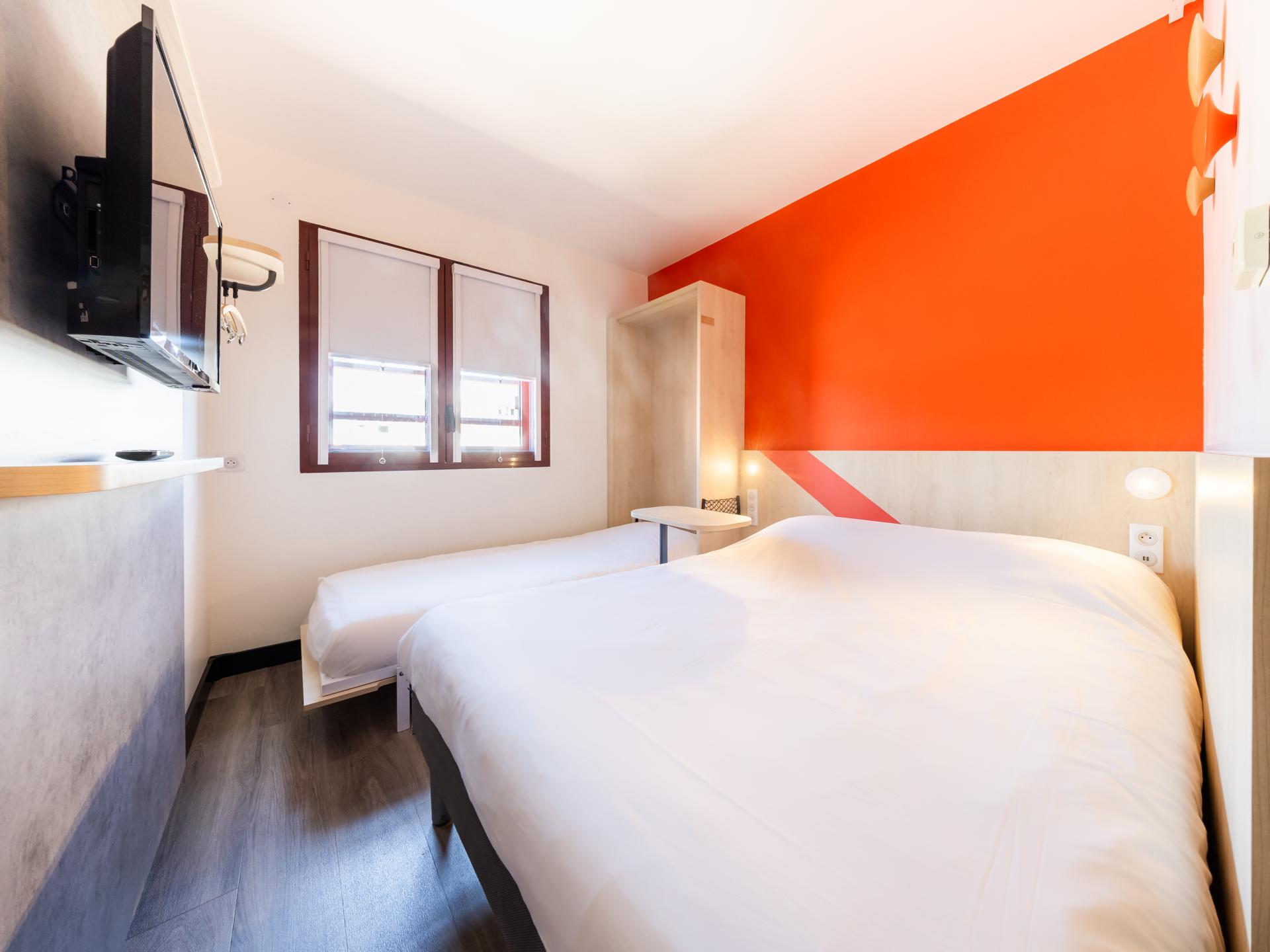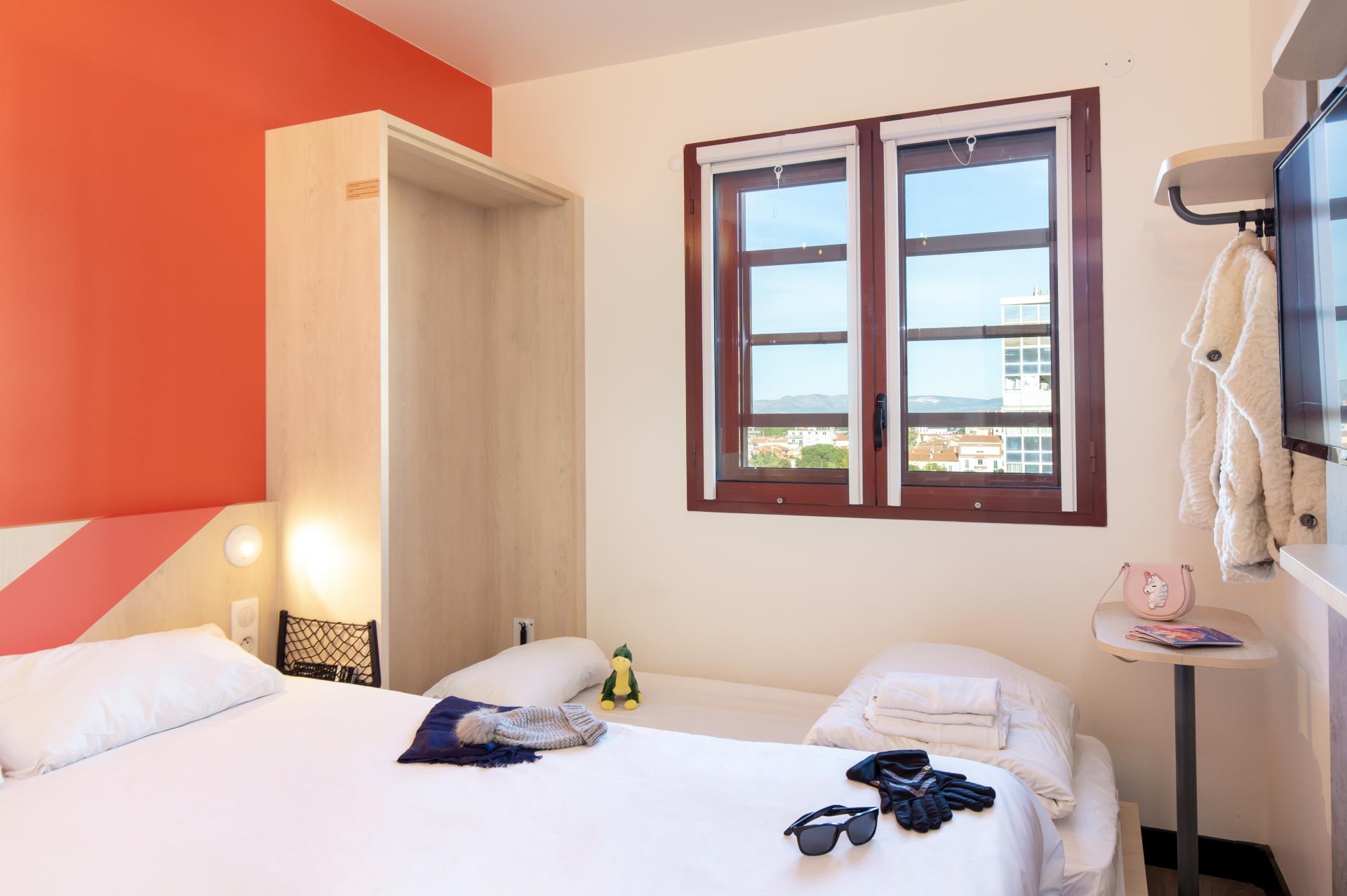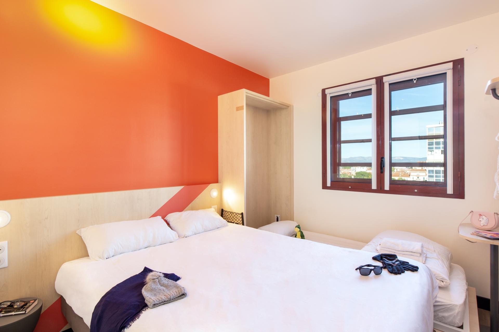 L'ibis budget Perpignan Centre vous propose des chambres climatisées au design moderne pouvant accueillir jusqu'à trois personnes. Situé au coeur du centre-ville, vous accèderez rapidement aux sites touristiques incontournables ainsi qu'au Palais des congrès et au centre culturel "Le Théâtre de l'Archipel". Découvrez notre petit déjeuner varié ainsi que nos offres de restauration 24h/24. L'accès illimité au wifi est gratuit et la réception est ouverte 24h/24. Notre équipe est présente pour vous renseigner