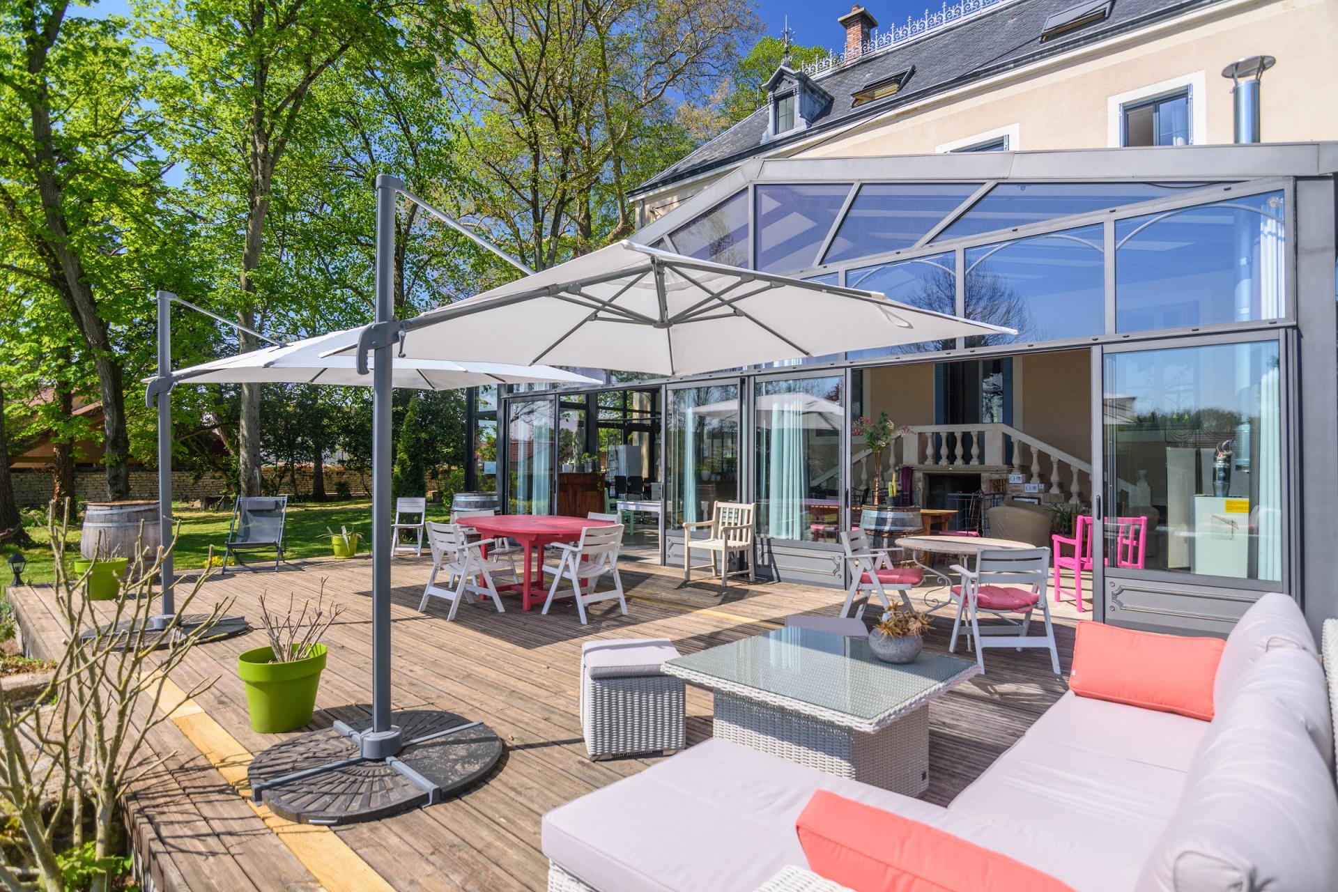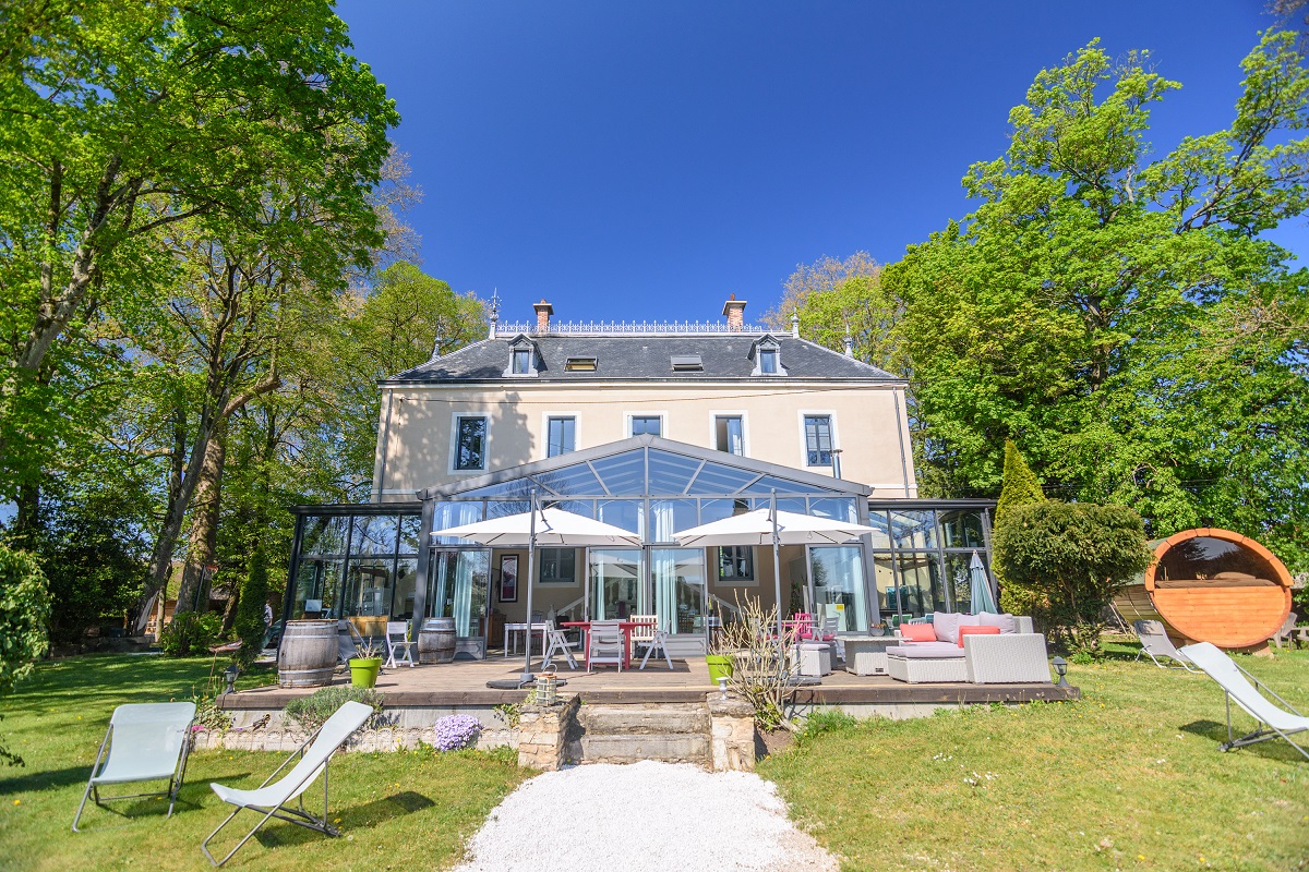Propriété du 19 -ème siècle située à 5MN du centre historique de Chalon sur Saône, dans un château avec ses deux tours et toit en ardoises. Ancienne maison de la gouvernante de Marguerite BOUCICAUT (personnalité locale qui a crée "Le bon Marché à PARIS").