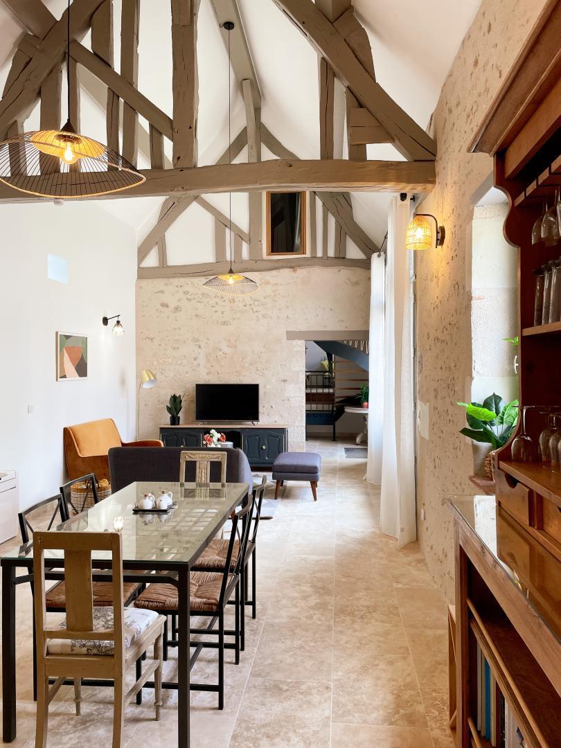 Entièrement rénové en 2022, le Clos de Madon associe tout le confort moderne au charme d’un bâtiment historique du XVIe siècle. Construit sur 2 étages, il offre 4 belles chambres, un grand salon ouvert sur une terrasse privative et une cuisine moderne tout équipée, pour une surface totale de 120m2. Le gîte à la décoration soignée est classé 3 épis sur Gites de France. Il est ouvert toute l’année.