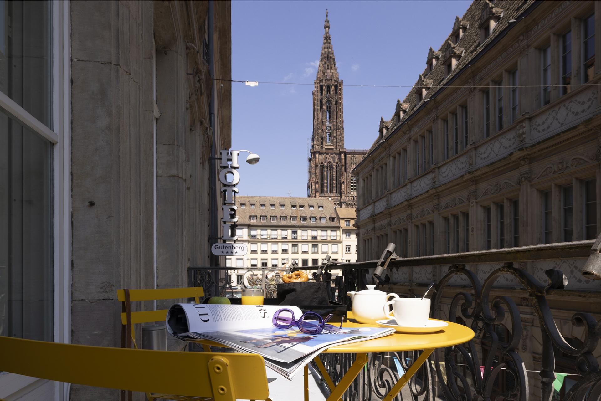 Face à la majestueuse cathédrale de Strasbourg, plongez dans une atmosphère tendance en résidant à l’Hôtel Gutenberg 4 étoiles et découvrez tout le charme de la capitale européenne.