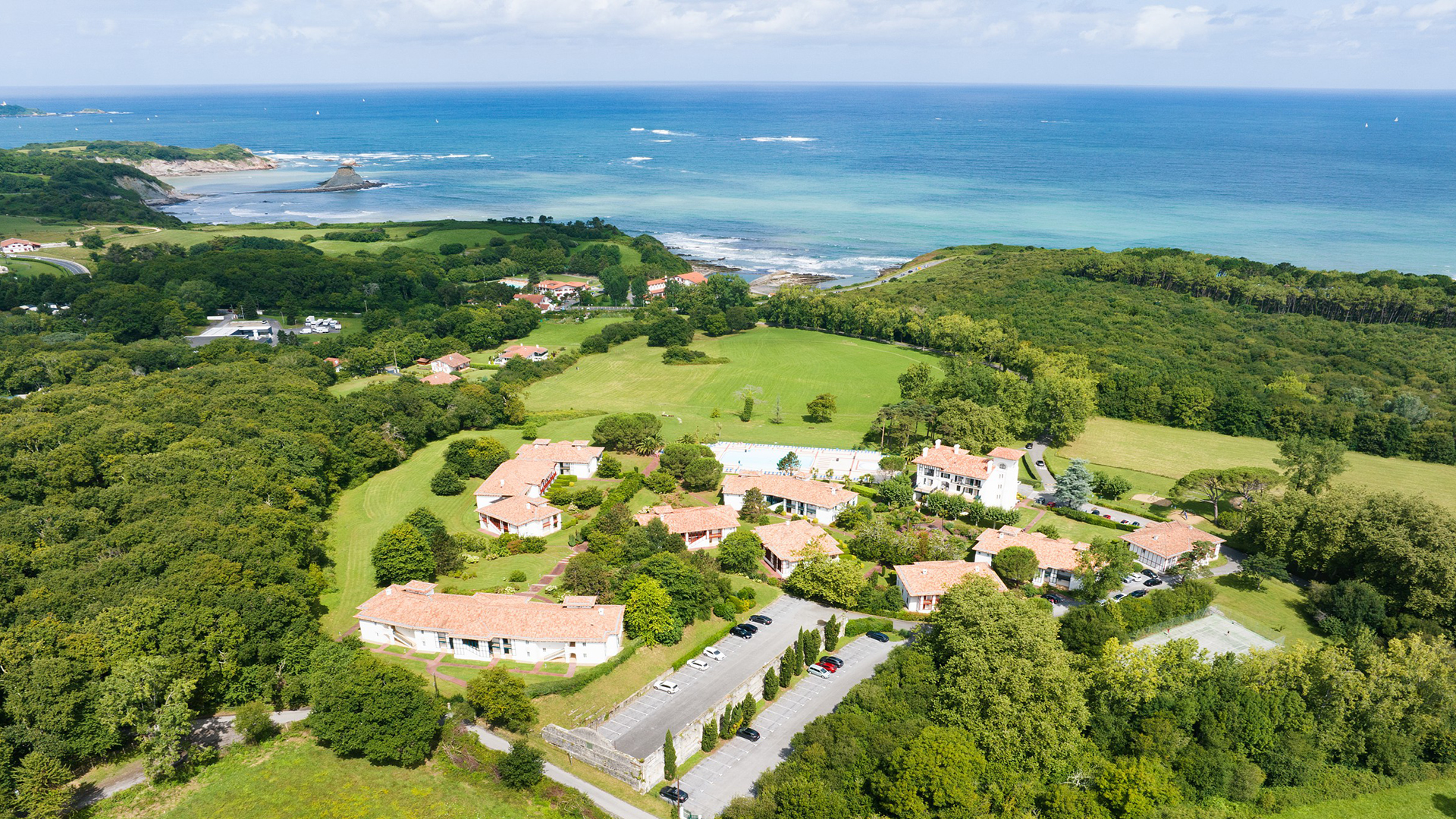 Le Domaine de Bordaberry occupe un emplacement exceptionnel sur la corniche basque, avec vue sur la mer. Il se déploie en 9 petits bâtiments de style néo-basque autour de l'ancienne maison de maître de Madame de Trévise.